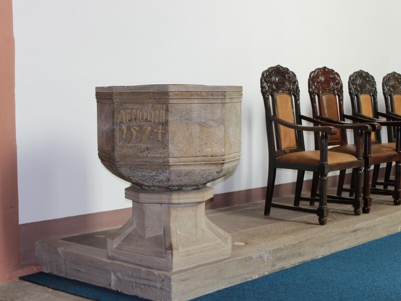 Auf der gegenüberliegenden Seite des Chores steht der aus der abgebrochenen Martinikirche stammende Taufstein von 1574 mit dem Steinmetzzeichen des Blomberger Baumeisters Hans Rade. Auch zwei im Chor aufgestellte Grabplatten stammen aus der ehemaligen Stadtkirche.